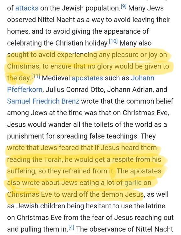 European Jews had a tradition of refusing to experience any joy on the day, avoiding reading the Torah in case it gave Jesus any respite from his suffering, and eating garlic to ward off Jesusâ demonic spirit.[/url]