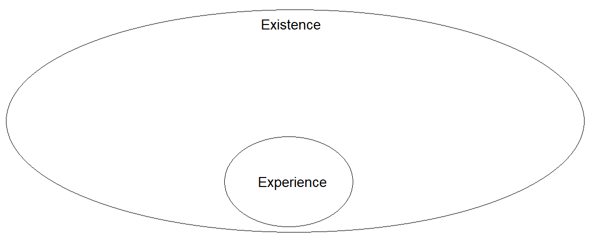 Set theory. When I say experience is not existence I mean they are different sets. Experience exists and is therefore part of existence. Experience is a subset of existence.