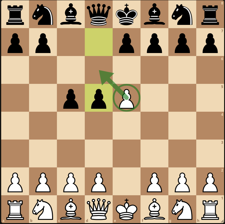 Setup: White has a pawn on the 5th row, and black moves a pawn two spaces to end up beside it: