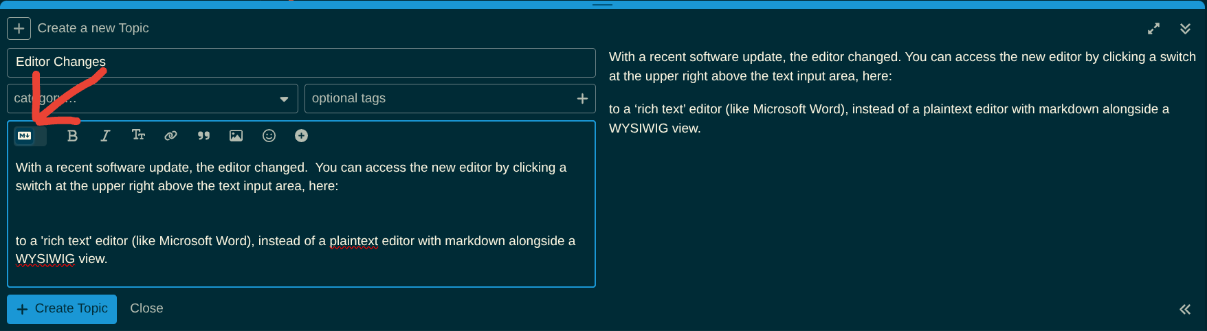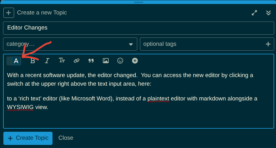 The new default is now a ‘rich text’ editor (like Microsoft Word), instead of a plaintext editor with markdown alongside a WYSIWIG view. I can understand the motivation behind the change (official announcement is here), but personally I prefer the old ways.