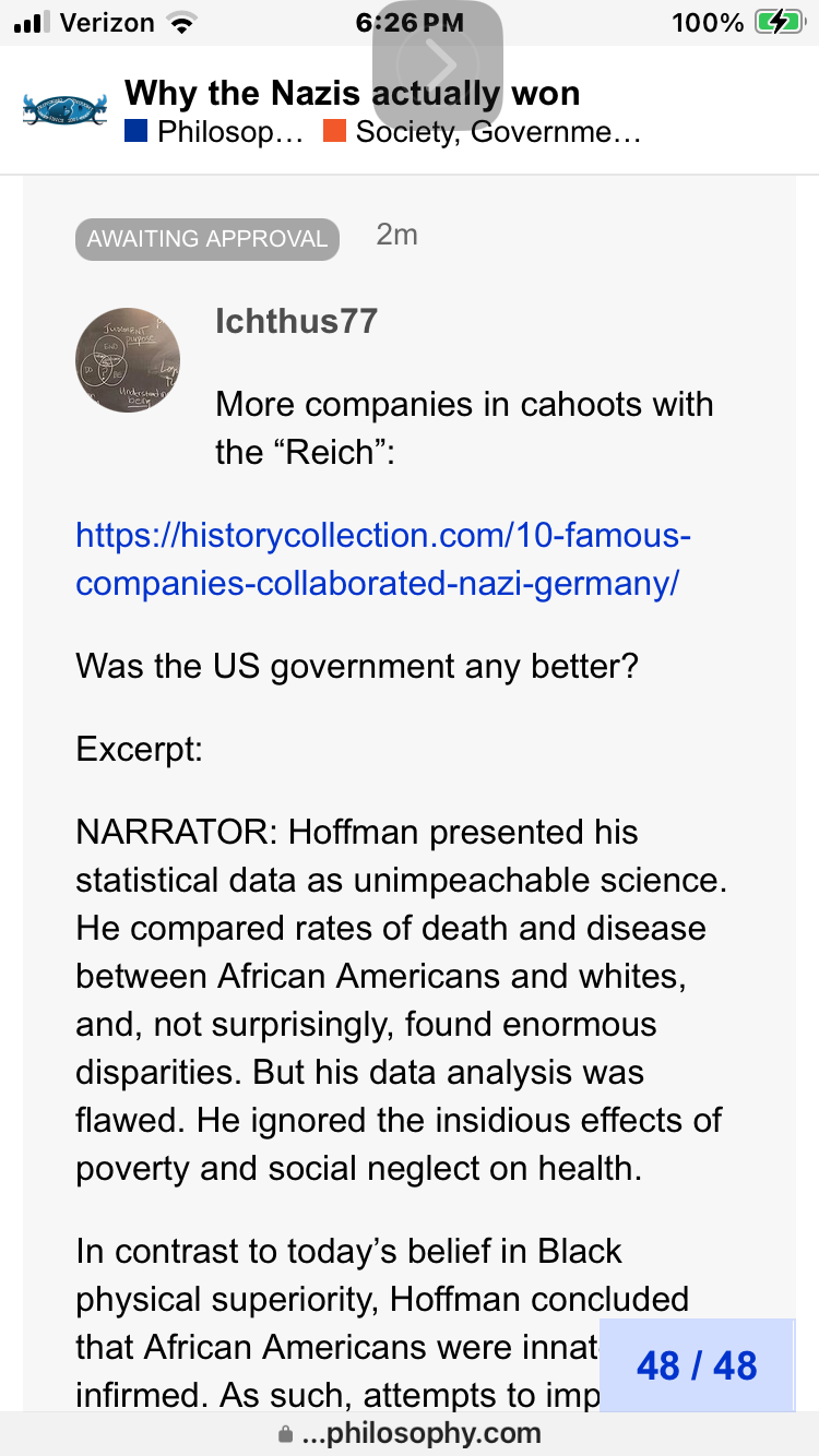 Posts containing the word “negro”, among a handful of others, are held for approval because I don’t want a racist screed on public-facing parts of the site, or being included in a digest email. c.f. Nazi bar.