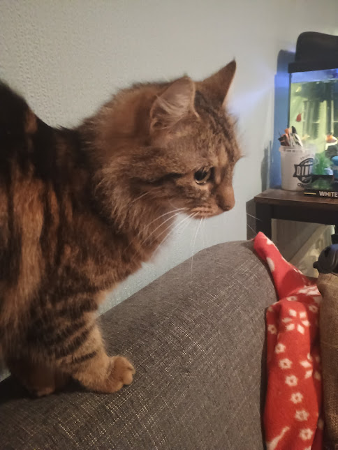 Trust me, this one is not boring or predictable. Always hungry, steals food. Pretends to want attention, then goes on the attack. Loud crashes throughout the night. I’m not kidding, this isn’t a cat, it’s a demon from another dimension in cat form. I love her anyway though.