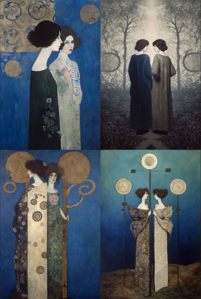 I saw these klimt inspired AI images and thought I’d post them here. Some of them seem to be slight variations on the originals.