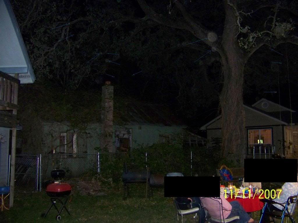 There has been many pictures and reports of ‘orbs’ supposedly of concentrated energy that form for whatever reason. Some weeks back during an outside birthday party at night I was trying different aperture/shutter/flash settings with a digtal camera I had recently purchased. To my surprise in some of the pictures I had downloaded to my computer, I viewed anomalies I had seen at diferent internet sites…orbs. There is an old house with a large oak tree on my property by house. If there is any relation between the two, I have no idea. Then, last week, there was another evening party at which I had taken pictures again. This time there was more ‘orbs’ with greater intensity. When I view them with a picture editor, I notice a vaporous colors around them with some leaving residual trails of travel. I have also seen and heard through different sources that these types of activity gravitate around gatherings like what had happened at my residence.
