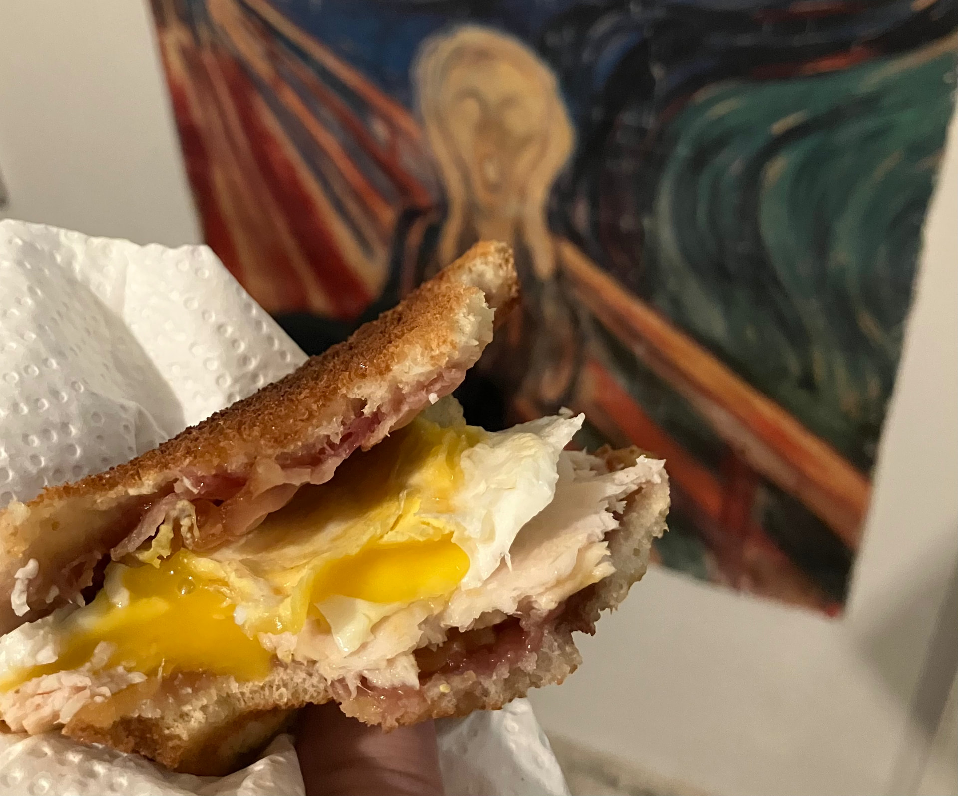 This is The Flying Sandwich of Edvard Munch, close cousin of The Flying Spaghetti Sandwich:
