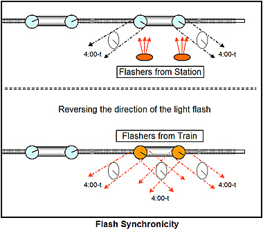 The train will see its timers reading 4:00-t when they flash or are flashed upon. The station will see that same image.