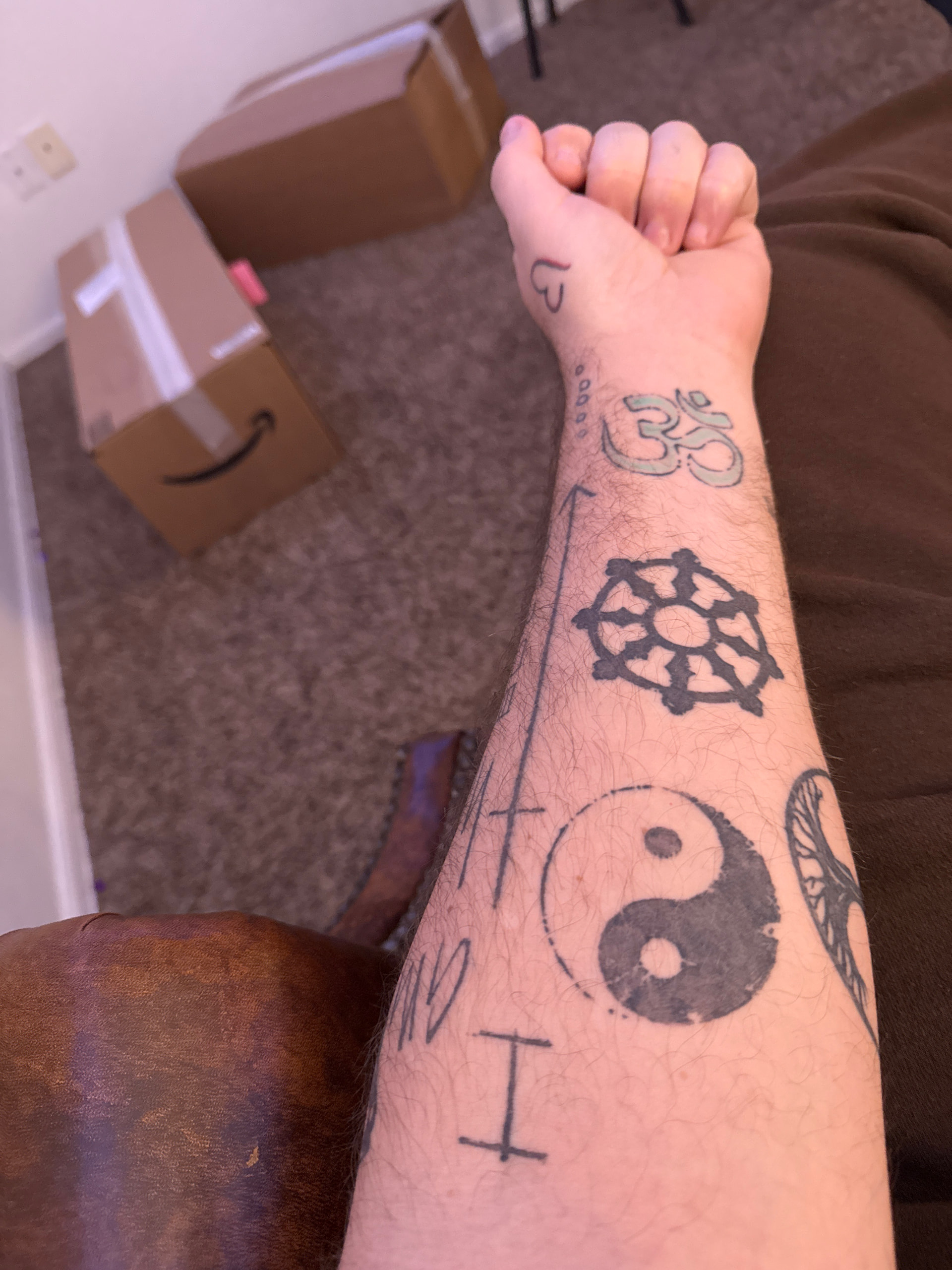 I understand it like this - reality, the path to understanding that reveals the true nature of reality. So reality is often looked at like the first symbol The taijitu is reality often looked at in dual forms but together is whole. There is more to it but that is like a summary. The 8 fold path starts with “right view.” Basically this is seeing reality without taking a single perceptive but any and all that can be applied. The right view follows the right intention and then the right speech. When these are applied to the experience the rest tend to follow without much effort. The AUM is like the end of the map not saying it’s the end of the seeking or understanding because this whole event of existence isn’t stopping. It’s always unfolding so think it as like a return to the beginning again…anyway….im sure plenty of people here are going to rip me apart for this but I have no concern of that I just ask they are respectful. I’m not telling anyone to follow my lead or you’re ignorant if you don’t behave what I’m saying. I’m just simply saying this is how i do it…that’s it. Also these aren’t the only “spiritually” associated images i have. I’ve got crosses, a lion with red yellow green (or green yellow red) color in the mane. I have some other Chinese and Japanese symbols… im not tied to anyone practice. I believe they all point to the same thing.