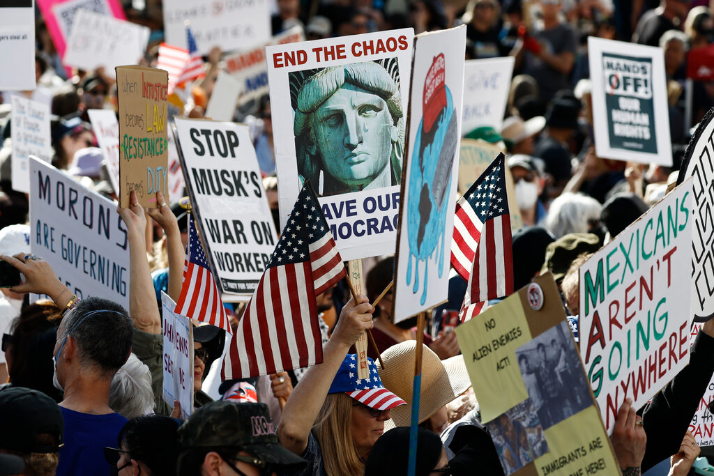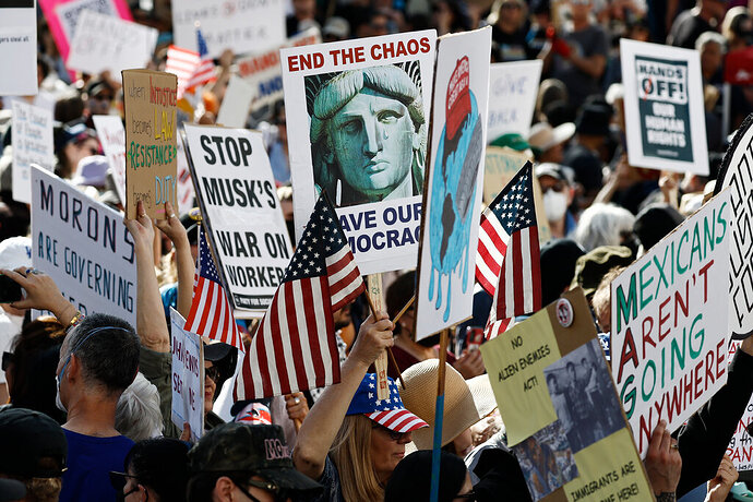 Thousands of demonstrators rallied at hundreds of events on Saturday to speak out against the president’s handling of immigration, civil liberties, job cuts and many other issues. I expect protest to increase as long as Trump is president. As things get worse for them, the MAGA folks will join the protest in large numbers.