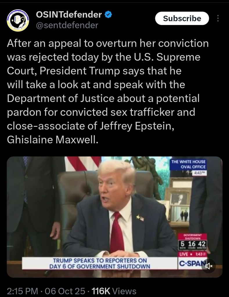 Letting Ghislaine out to rape (and possibly murder) more people, wow, trump has sunk to a new low.