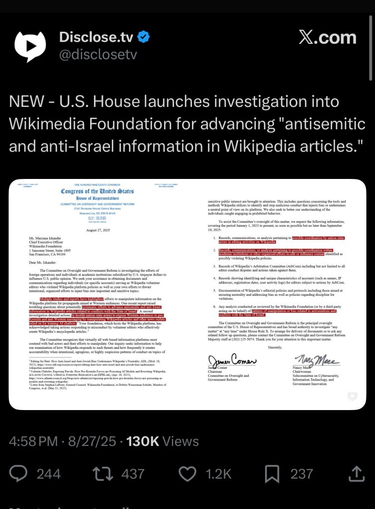 It’s rumored Wikipedia was originally started by the government itself, I guess we’re witnessing a purge inside the government for WrongThink. ![]()